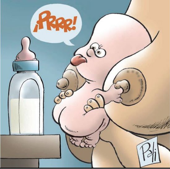 Não podemos comparar a mamadeira ao peito. O leite flui com muita facilidade pelo bico da mamadeira, o que facilita a amamentação e não serve como exercício para a criança.